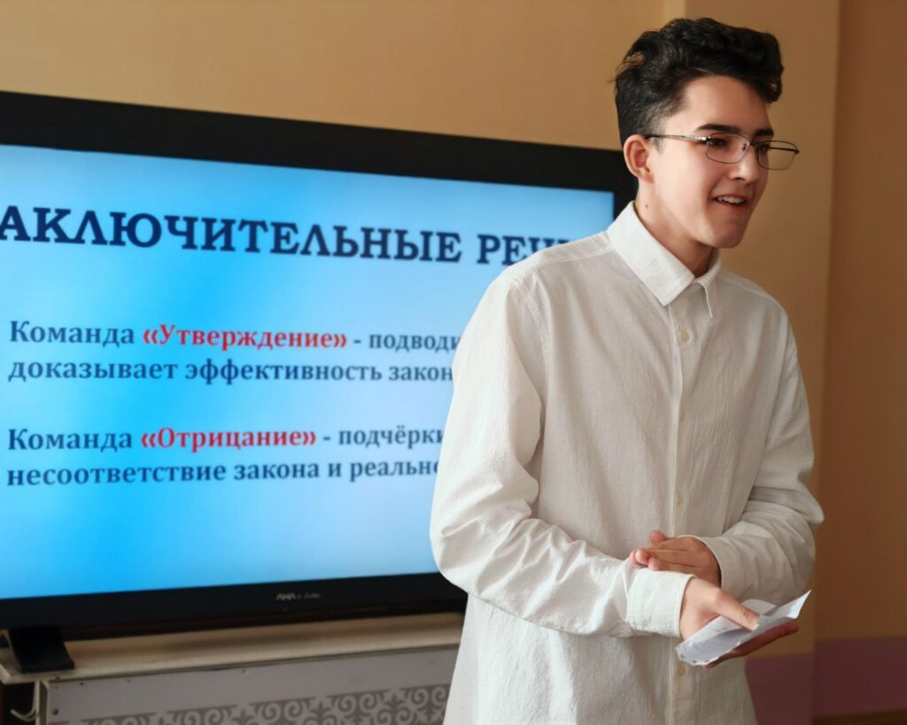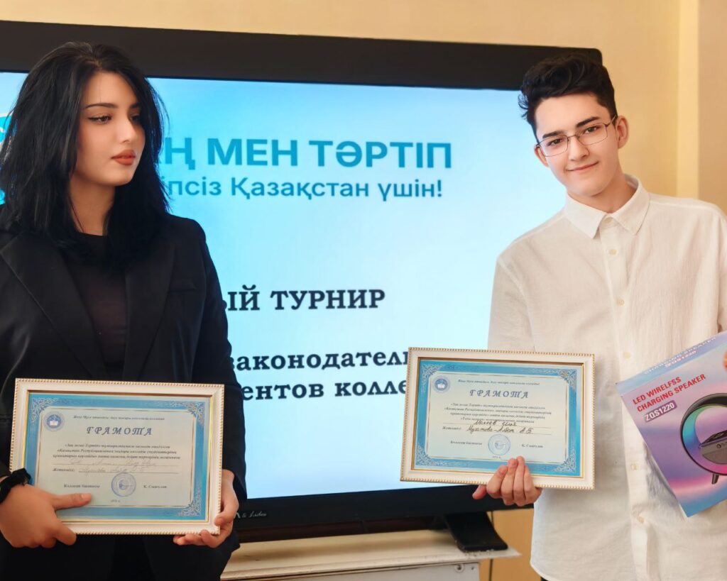 Қаланың екі колледжінен келген командалар өзара тартысты пікір алмасып, құқықтық сауаттылық пен шешендік шеберліктің жоғары деңгейін көрсетті.