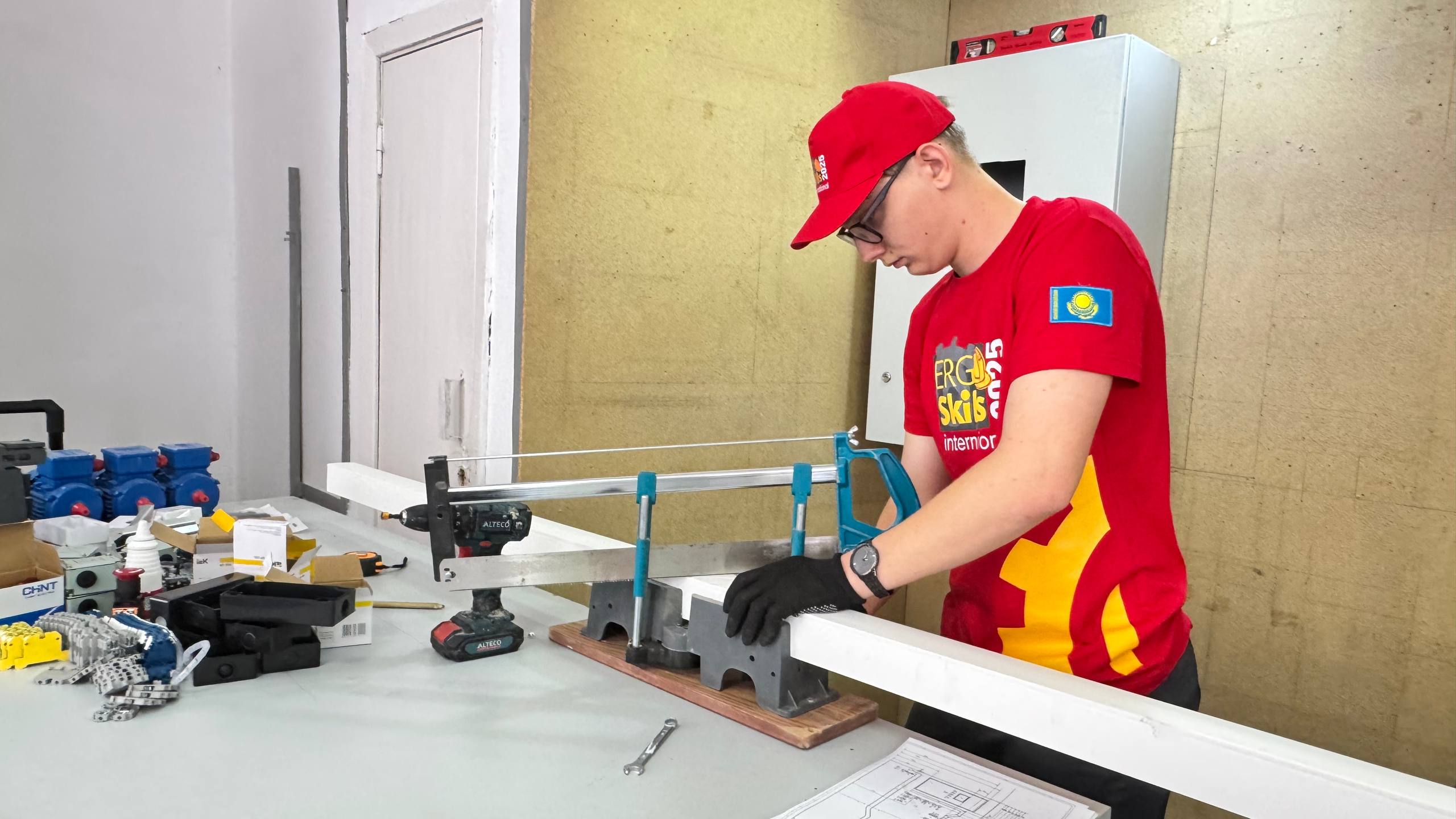 Қатысушылар өз шеберліктерін екі құзыреттілік бойынша көрсетуде — «Өндірістік автоматика» және «Электрмонтаждау».