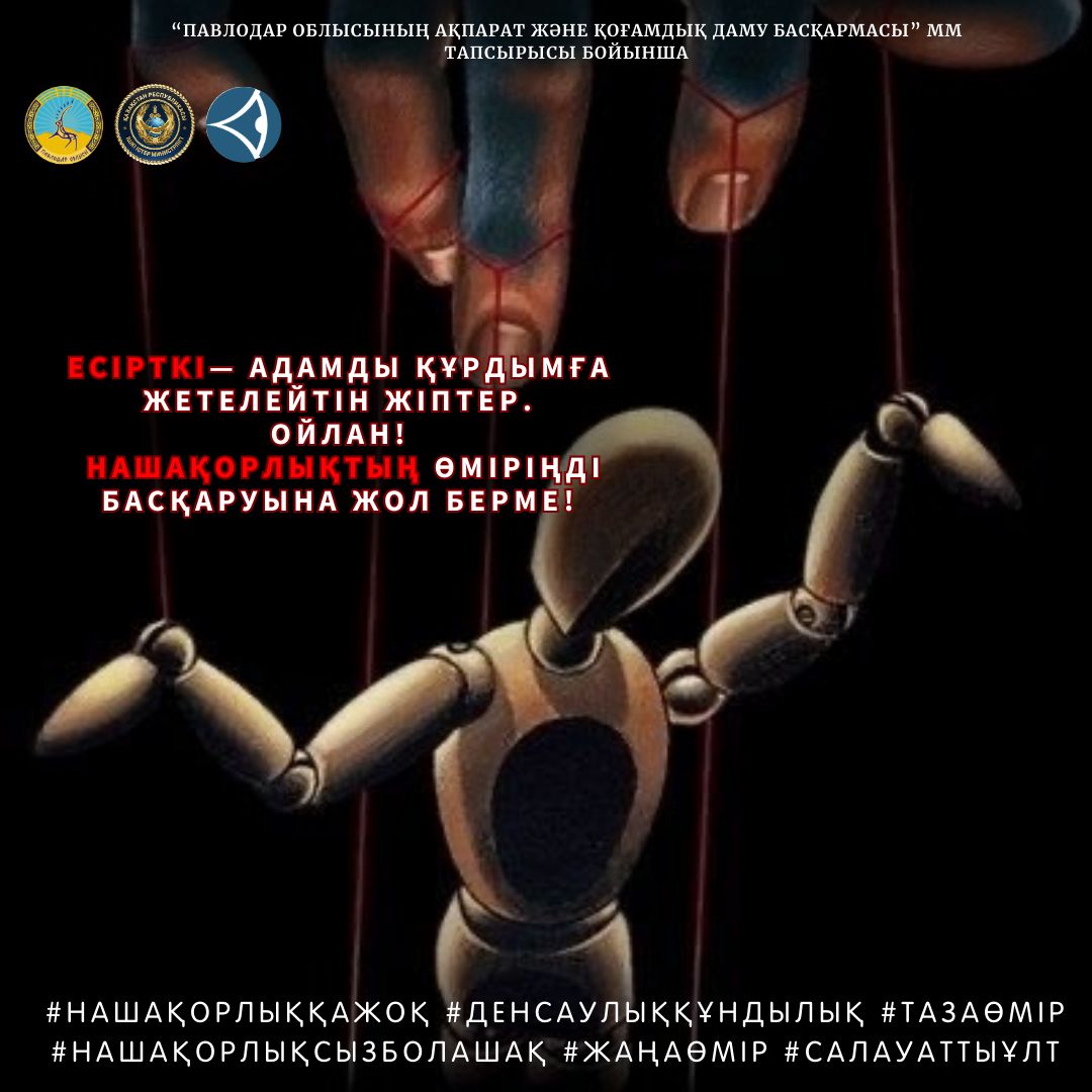 Есірткі — адамды құрдымға жетелейтін жіптер. Ойлан! Нашақорлықтың өміріңді басқаруына жол берме!