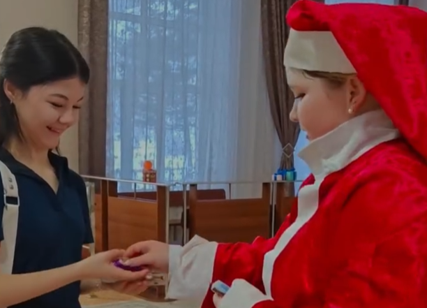 🎅Таң сәріден бастап колледж дәліздерін Санта-Клаус аралап, студенттер мен қызметкерлерге көтеріңкі көңіл күй, тәттілер мен сыйлықтар тарту етті. Сол сәттерде рекреациялар мен аудиторияларда күлкі үні естіліп, әрбір сыйлық жаңа жылдық ғажайыпқа айналғандай болды.