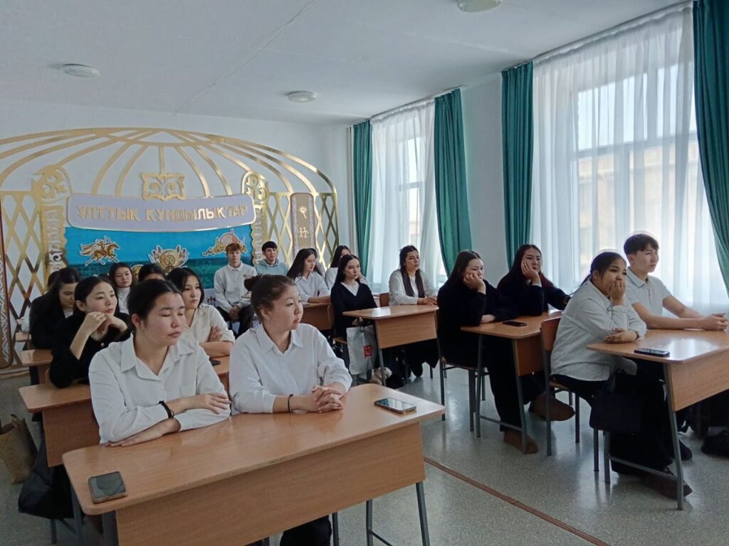 Заместитель руководителя по воспитательной работе Айжан Мусатова-Албот рассказала будущим избирателям о правах граждан в избирательном процессе, формах и методах проведения выборов, их видах и уровнях, а также об ответственности за нарушение избирательного законодательства.