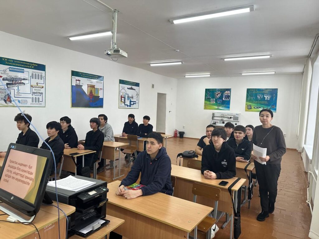 «Заң және тәртіп» тұжырымдамасын іске асыру аясында колледжде кураторлық сағаттар өткізілді. Іс-шара барысында білім алушылар заңнаманы сақтау, азаматтардың құқықтары мен міндеттері, сондай-ақ құқық бұзушылықтар үшін жауапкершілік мәселелерін талқылады.